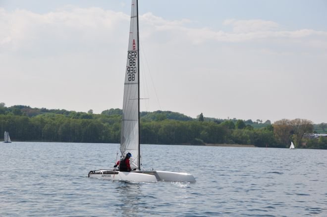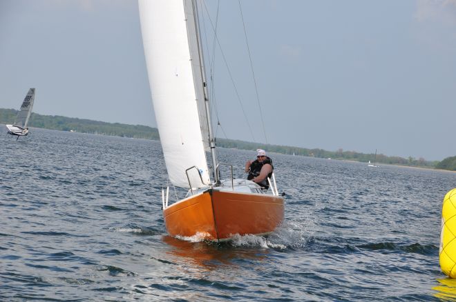Spargelregatta 2019, Arne Stahl vom Kanu- und Segelclub Mardorf gewinnt den 9. Spargelpokal.
