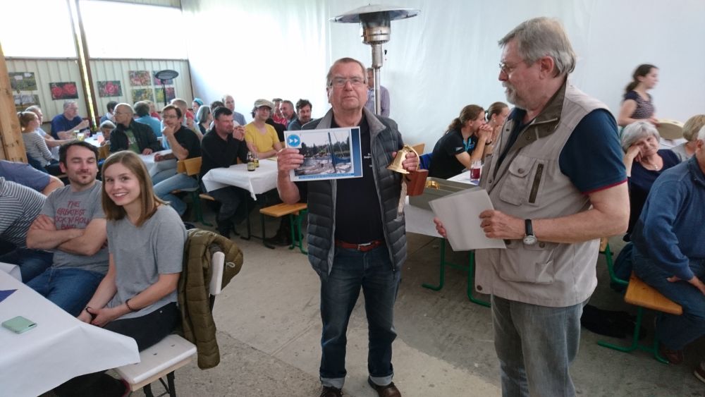 Spargelregatta 2017, Peter Ullmann vom Zwischenahner Segelclub gewinnt den begehrten Pokal.